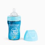 تویست شیک این بار با الهام گرفتن از آخرین مد دنیا، شیشه شیرهایی از جنس استیل ضد زنگ را تولید کرده است. شیشه شیر استیل ۲۶۰ میلی لیتر ماربل آبی تویست شیک با کیفیت، با دوام و مقاوم و بدون خطر است. شیشه شیر استیل ضد زنگ تویست شیک با کولیک نوزادان نیز مقابله می کند. طراحی ارگونومیک این محصول بی نظیر به گونه ای است که در دستان کوچک نوزاد به راحتی جای می گیرد.