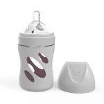تویست شیک همواره یکی از برندهایی است که با تلفیق خلاقیت و نوآوری همواره محصولات جدید و با کیفیتی تولید میکند. شیشه شیر شیشه ای آنتی کولیک تویست شیک یکی از جدیدترین محصولات این برند است که وزنی بسیار سبک و دوامی طولانی مدت دارد. برای تولید این شیشه شیر، از شیشه بوروسیلیکات استفاده شده است. به همین دلیل دوام آن نسبت به دیگر شیشه شیرها بیشتر خواهد بود.