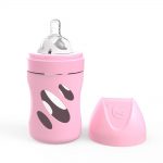 تویست شیک همواره یکی از برندهایی است که با تلفیق خلاقیت و نوآوری همواره محصولات جدید و با کیفیتی تولید میکند. شیشه شیر شیشه ای آنتی کولیک تویست شیک یکی از جدیدترین محصولات این برند است که وزنی بسیار سبک و دوامی طولانی مدت دارد. برای تولید این شیشه شیر، از شیشه بوروسیلیکات استفاده شده است. به همین دلیل دوام آن نسبت به دیگر شیشه شیرها بیشتر خواهد بود.