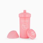 لیوان های تویست شیک مناسب ترین انتخاب برای کودکانی است که همراه با بزرگ شدن، مکیدن شیشه شیر خود را کنار گذاشته و در حال یادگیری جهت جایگزینی و استفاده از لیوان می باشند. مکانیزم درپوش لیوان به منظور ریخته نشدن مایع داخل لیوان به بیرون و فرم مناسب لیوان جهت نگهداری در دست کاملا با نوع فعالیت و تحرک کودکان در این سنین سازگار می باشد. مخلوط کن منحصر به فرد تویست شیک یک اختراع نوآورانه و انقلابی است که امکان تهیه نوشیدنی های خاص و جذاب را برای کودکان و والدین فراهم می سازد. میوه های مورد نظر خود را با مقداری آب در داخل لیوان بریزید و به خوبی آن را تکان دهید تا نوشیدنی طبیعی و سالم تولید کنید.
